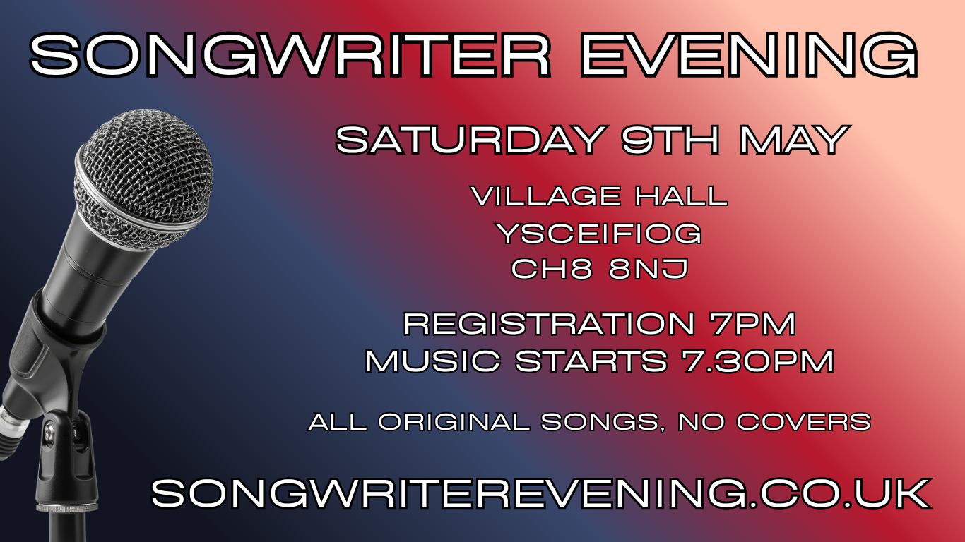Join us on Saturday 9th May at Ysceifiog Village Hall for an evening where the audience comes to listen — and the performers share their own work.